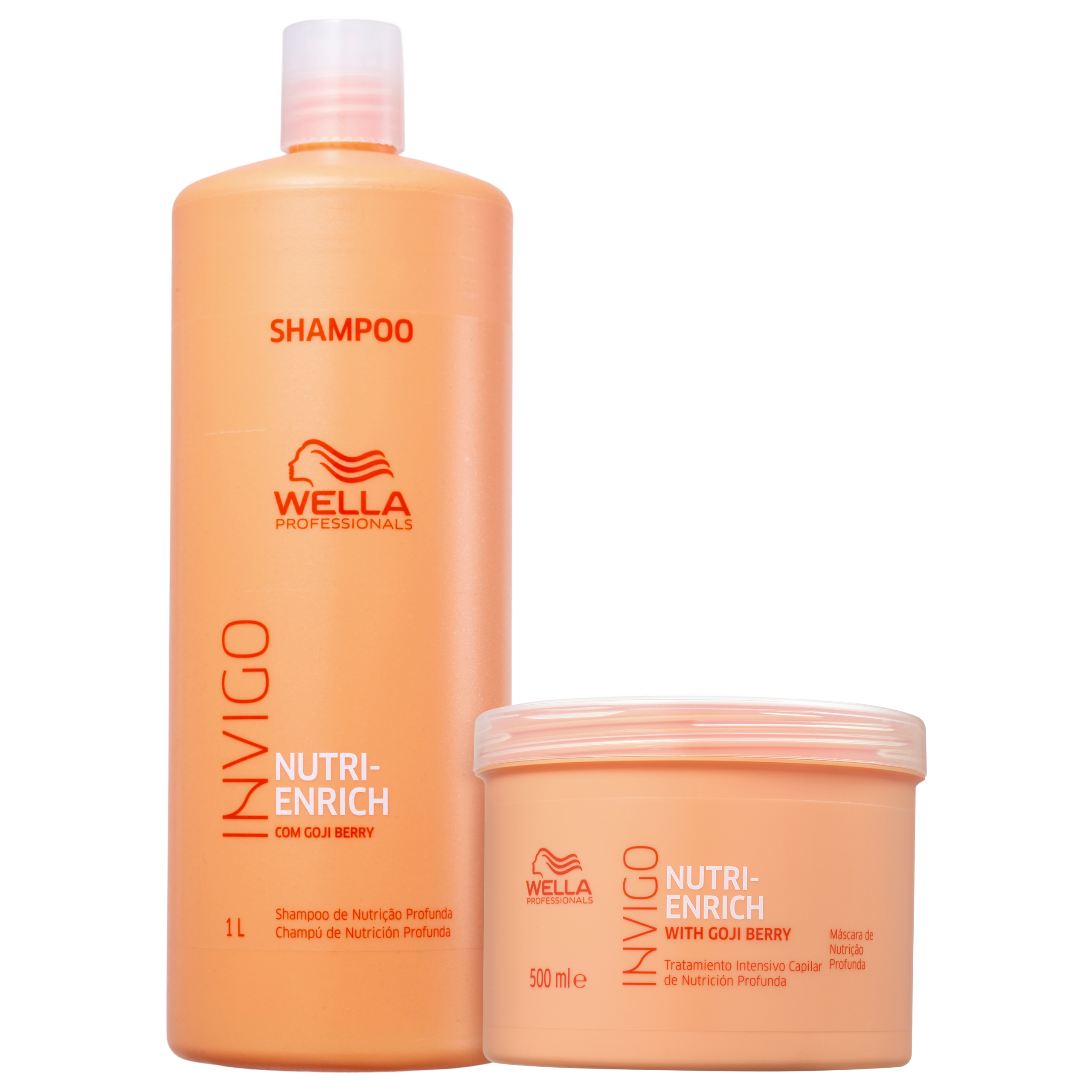 Detalhes Kit Wella Professionals Invigo Nutri-Enrich Super Salon (2 Produtos) Kit com shampoo e máscara, em tamanhos profissionais, para cabelos secos, ressecados ou com química. W