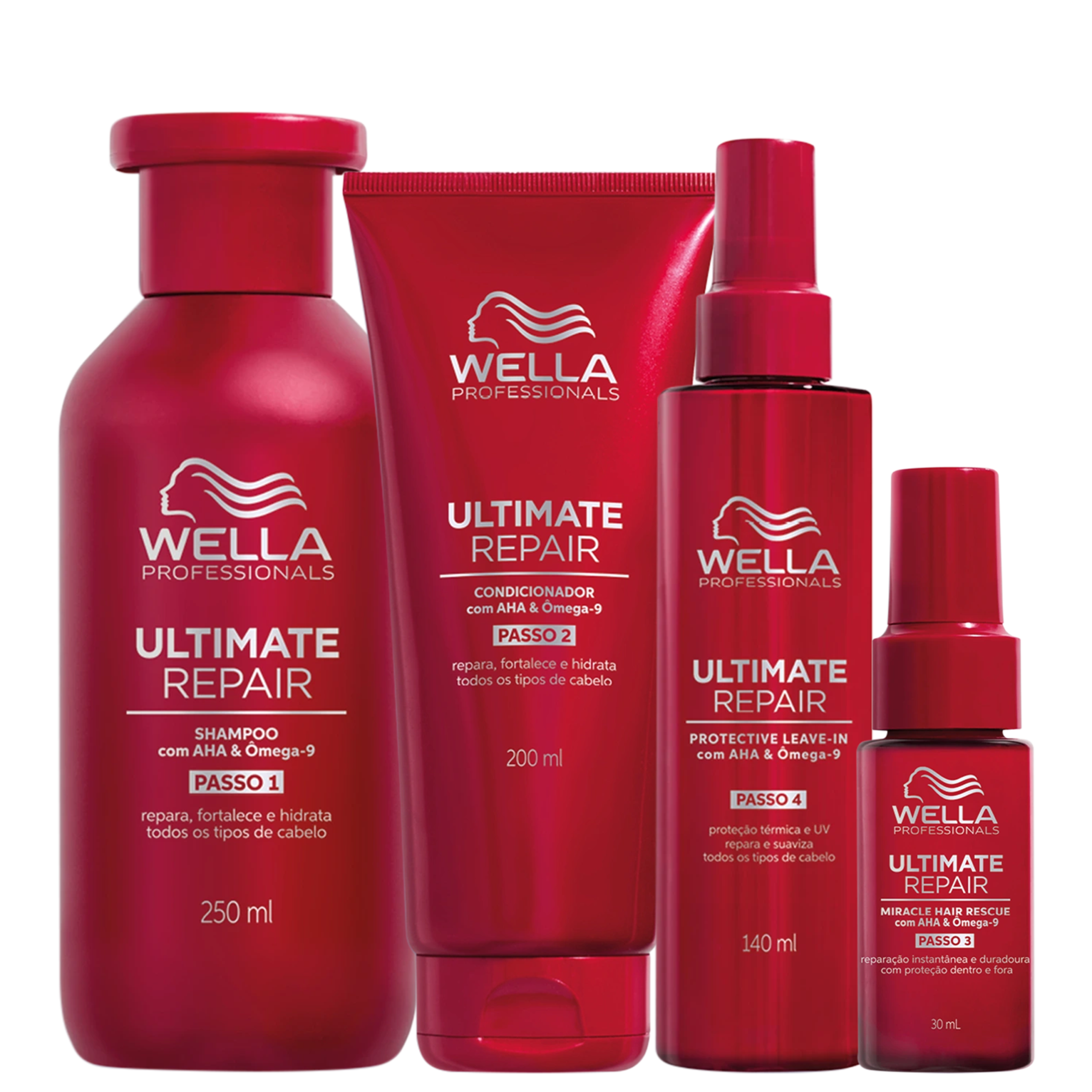 Detalhes Kit Wella Professionals Ultimate Repair (4 Produtos) Kit completo para cabelos danificados. Wella Professionals Ultimate Repair garante a reparação dos fios em apenas 90 segundos. O Kit Wella Professionals Ultimate Repair reúne os produtos ideais para uma rotina completa de cuidados com o cabelo. As fórmulas conferem limpeza, hidratação, proteção e sedosidade. Suas madeixas vão ficar saudáveis e cheias de vida outra vez!