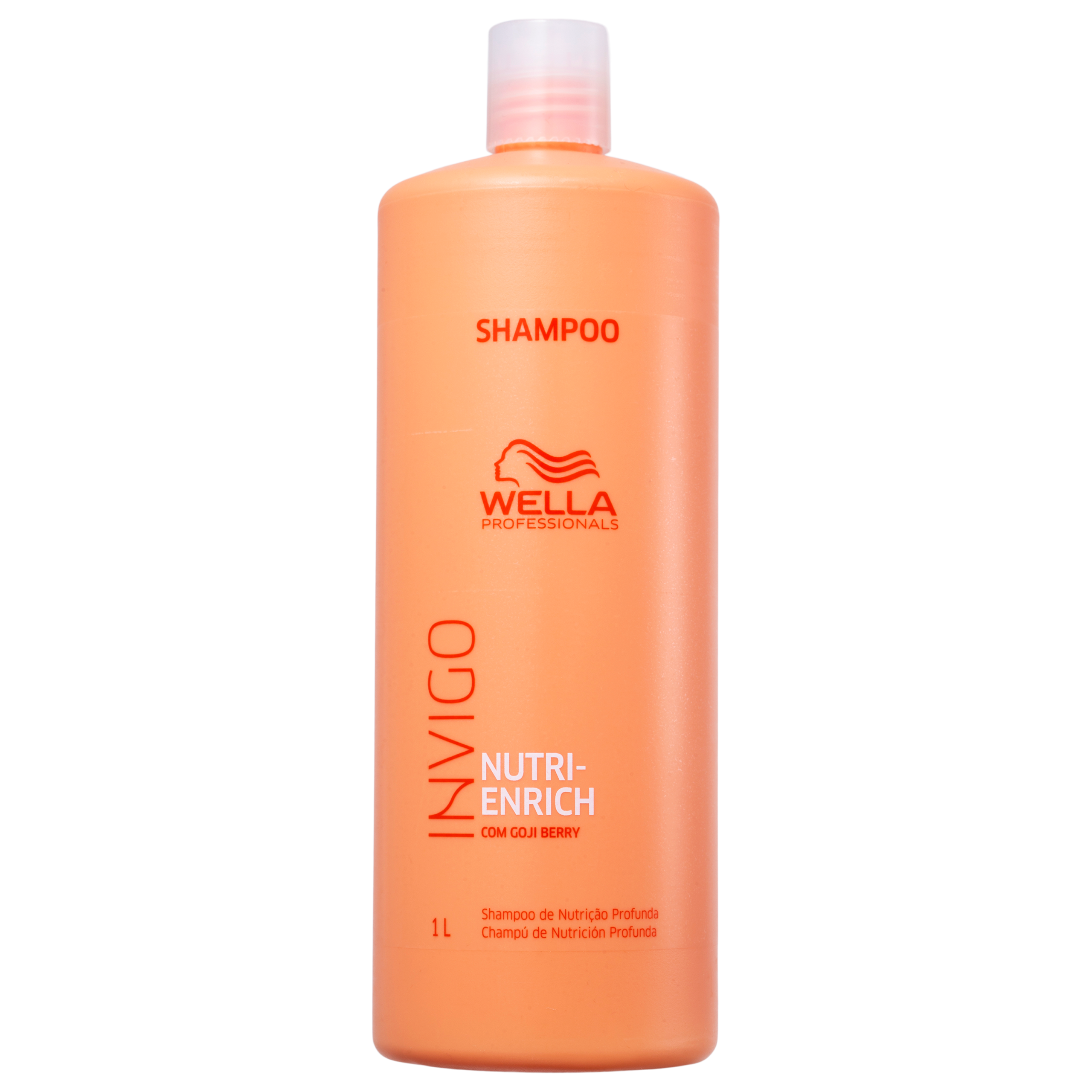Detalhes Wella Professionals Invigo Nutri-Enrich Shampoo para cabelos secos, ressecados ou quimicamente tratados. Wella Professionals Invigo Nutri-Enrich Litro promove limpeza com